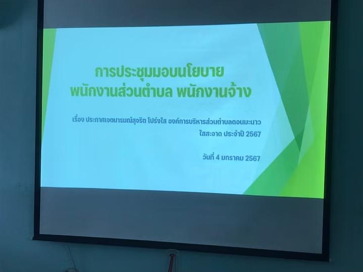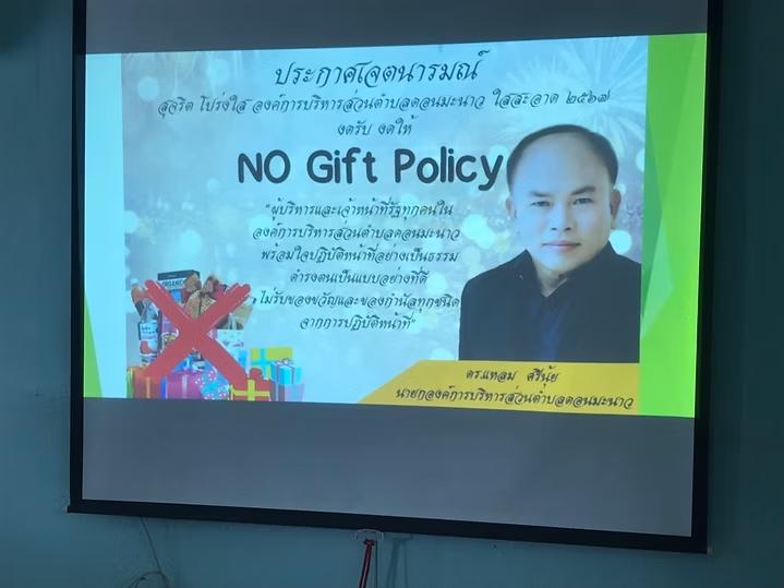 ประชุมมอบนโยบาย No Gift Policy จากการปฏิบัติหน้าที่ ให้กับพนักงาน เจ้าหน้าที่ทุกส่วน ขององค์การบริหา
